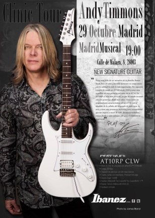Andy Timmons visitará Madrid el próximo 29 de octubre para ofrecer un clinic enfocado a mostrar su última guitarra signature, la AT10RP CLW. El conocido guitarrista de Danger Danger, Protocol y Andy Timmons Band entre muchas otras colaboraciones, estará de gira de clinics con Ibanez.