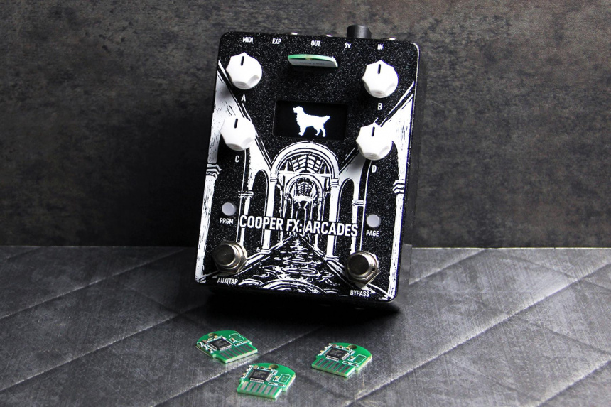Desde que Cooper FX diseño su primer pedal en 2015 basado en los semiconductores Spin FV1, un chip que puede ser programado con una EEPROM externa, tuvo la idea de hacer un multiefectos con cartuchos intercambiables. Años de aprendizaje y desarrollo han dado como resultado su último proyecto, Arcades.