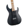 El mástil construcción neck-thru (a través del cuerpo) es de 5 piezas de arce tostado y nogal, perfil Slim D, escala de 25.5″, diapasón de arce tostado con grandes inlays rectangulares, 24 trastes Jumbo de acero inoxidable, radio de 15.75″, puntos laterales luminiscentes, cejuela Graph Tech Black Tusq, y afinadores Cort con bloqueo.