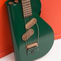 El cuerpo de la guitarra Verso Cosmo es una lámina doblada de acero con pastillas móviles