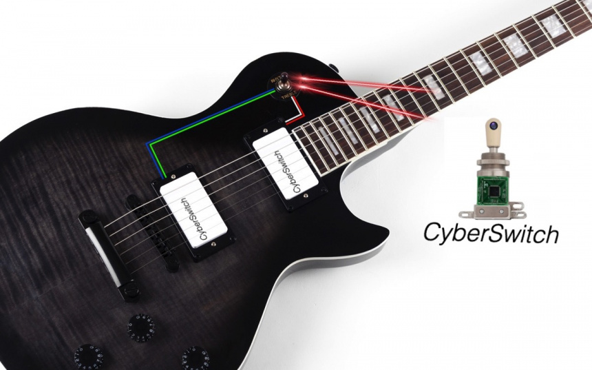 CyberSwitch es un selector de palanca de 3 posiciones como el típico que encontramos en guitarras estilo Les Paul, que incorpora un diodo láser en la parte superior para detectar la posición de nuestra mano en el mástil, enviando la información a un microprocesador que conmuta automáticamente entre la pastilla de mástil si tocamos en el registro agudo, o la de puente si estamos en la parte más grave, liberándonos de esa tarea para que podamos concentrarnos en la interpretación.