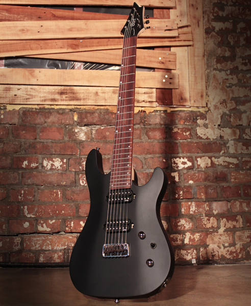 En este caso tenemos una guitarra barítono de 7 cuerdas con escala larga de 27", especialmente indicada para mantener tacto y tensión similares a los de una guitarra convencional a la hora de tocar esa cuerda extra, generalmente afinada en B, o emplear afinaciones 1 o más tonos abajo.