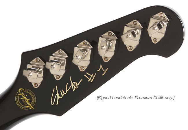 - Ltd. Ed. Slash Firebird Premium Outfit: Edición limitada de 100 unidades con un precio de 1.299 dólares, que incluye el autógrafo del guitarrista en la parte trasera de la pala; estuche rígido con el logo "Skull & Tophat" en dorado; correa de cuero, y certificado de autenticidad numerado y firmado por Slash.
