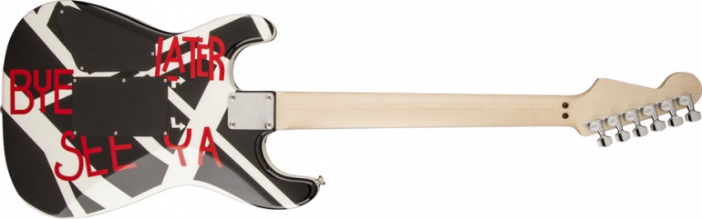 EVH la marca de Eddie Van Halen ha presentado recientemente una nueva guitarra que han añadido a su serie Stripe. En este caso es una réplica de una guitarra que Eddie usó brevemente durante su etapa de gira con el disco Fair Warning. Está guitarra también es conocida como la Unchained guitar, pues Eddie la sacó precisamente para tocar solo ese tema. También es conocida entre los fans como Circles o See Ya guitar (detrás lleva un gráfico con las palabras Bye See Ya Later). La guitarra mantiene las mismas características de la serie Stripe (cuerpo de tilo, pastilla tipo cebra, mástil de arce, radio compuesto de 12-16, etc.). Su precio de lista es de 1199 dólares (ya está en algunos lugares de USA por 999), así que si eres fan del genial guitarrista y quieres tener una pieza icónica, ya sabes.