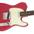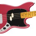 En los modelos offset como Jazzmaster y Jaguar, se incorporan silletas estilo Mustang y las Telecaster usan silletas tipo barril con surco. Los acabados, estilo relic, incluyen opciones como 3-Color Sunburst, Faded Black, Faded Lake Placid Blue o Faded Sherwood Green Metallic, y hay versiones disponibles en diapasón de arce o palisandro según el modelo.