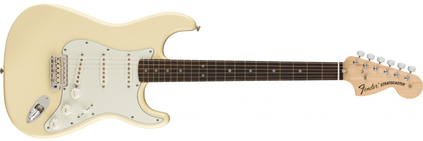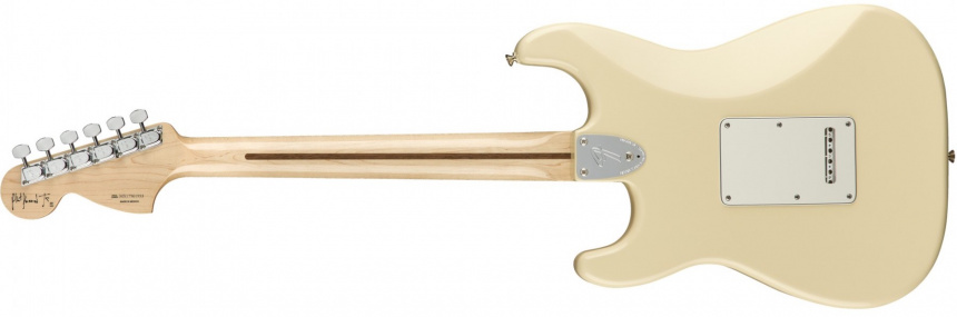 Excepto los desperfectos que ha ido acumulando la original, esta Signature replica fielmente esa Strato setentera. Esto incluye un cuerpo de Aliso con acabado Olympic White; vibrato con seis tornillos; 3 pastillas single-coil cerámicas; mástil de Arce con diapasón de Palorrosa; 21 trastes; radio de 7.25”; pala y logo estilo años 70; ajuste del alma tipo 'Bullet'; y una placa de unión mástil/cuerpo con la "F" grabada, 3 tornillos y ajuste de Micro-Tilt.