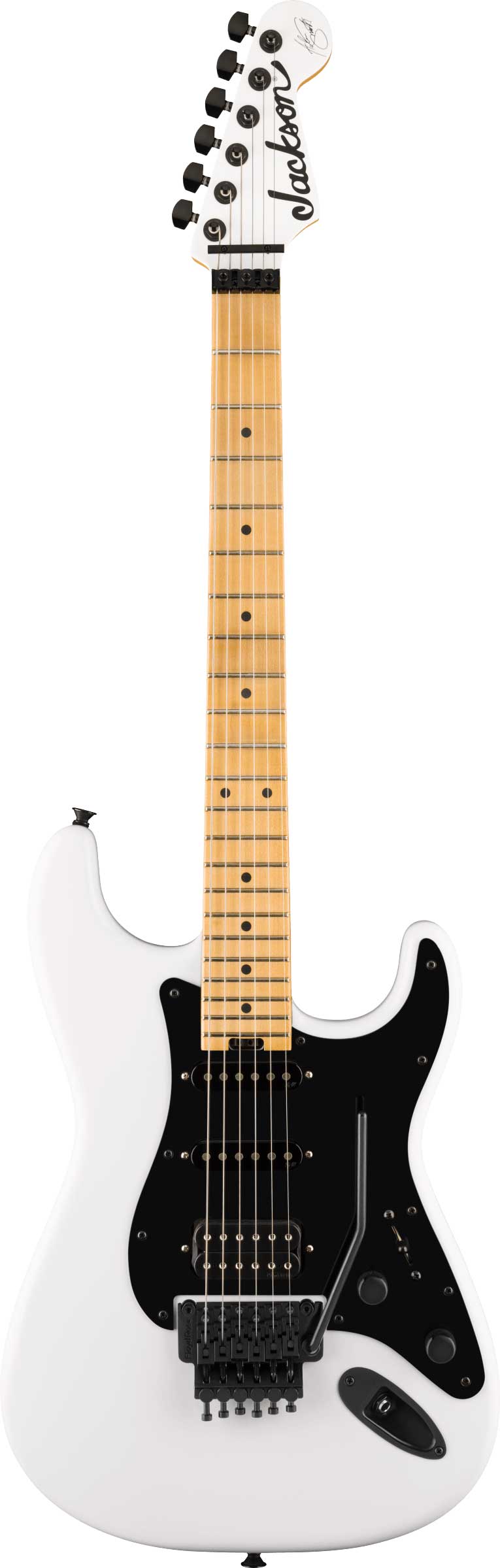 [Índice]Esta guitarra tiene un cuerpo de aliso en acabado Snow White, mástil de arce con refuerzos de grafito, diapason de arce Quartersawn, 22 trastes Jumbo, y radio compuesto 12"-16". El vibrato es un Floyd Rose con doble bloqueo, y está equipada con una humbucker DiMarzio Super Distortion DP100 en puente, y un par de single-coil Fender Samarium Cobalt Noiseless en centro y mástil. Su precio es de 1.629 €.