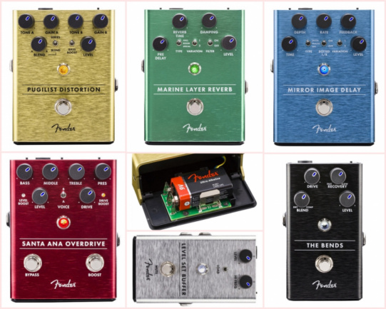Fender presenta 5 pedales de Buffer, Compresor, Overdrive, Delay y Reverb