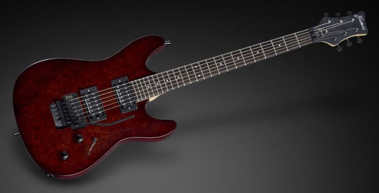 Cuerpo de Caoba con tapa (Veneer) de Poplar Burl, mástil atornillado de Arce, y vibrato Floyd Rose. Acabados: Nirvana Black Transparent High Polish, Antique Tobacco Transparent High Polish, y Burgundy Blackburst Transparent High Polish.