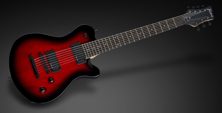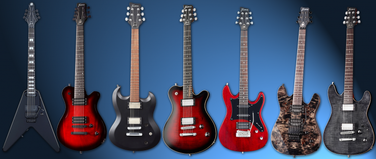 Esta 7 cuerdas tiene un cuerpo de Caoba con mástil atornillado de Arce y puente Tune-O-Matic. Acabados: Nirvana Black Transparent High Polish, Burgundy Blackburst Transparent High Polish, y Solid Black Satin.
