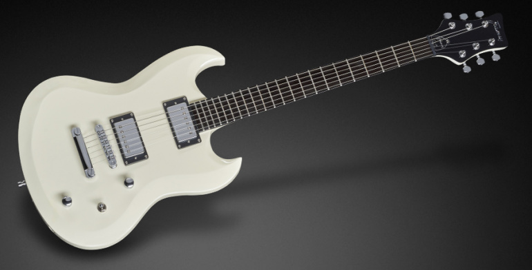 Cuerpo de Caoba tipo SG con mástil encolado de Caoba y un puente Tune-O-Matic. Acabados: Solid Black High Polish, Solid Creme White High Polish, Solid Black Satin, y Vintage Sunburst Transparent High Polish.