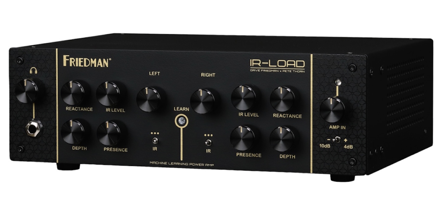 Pero como la idea del IR-Load es que sea un hub que se pueda conectar a casi cualquier cosa, también incorpora una etapa de potencia estéreo de 360 W de estado sólido, lo que equivaldría aproximadamente al nivel de volumen de un amplificador a válvulas de unos 90 W por canal (según la marca). Esta etapa se beneficia de la tecnología digital de Machine Learning desarrollada junto a Synergy — de la que ya os hablamos en la noticia del Wampler Pedalhead —, pensada para reproducir el comportamiento dinámico de una etapa a válvulas en interacción con la impedancia del altavoz. Un botón "Learn" permite hacer un barrido constante de la interacción entre etapa y pantalla, tratando de sacar lo mejor de ella y corregir la respuesta algo estéril de la etapa tipo clase D que emplea para amplificar.