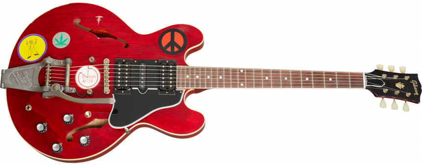 Esta nueva Alvin Lee ES-335 '69 Festival' refleja el aspecto que tenía la guitarra durante aquella actuación en Woodstock, incluida la modificación que el músico le hizo añadiendo una single coil entre las dos humbuckers de serie, y la pegatina con el símbolo de la paz que se convertiría en un icono de aquella época.