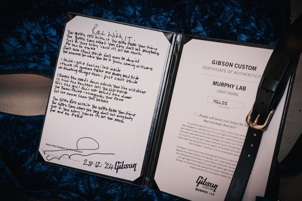 Cada guitarra incluye una letra diferente de canciones de Oasis, un certificado de autenticidad, un estuche, una correa de cuero hecha a mano por Bear Straps, y tendrá la parte trasera firmada a mano por Noel Gallagher.