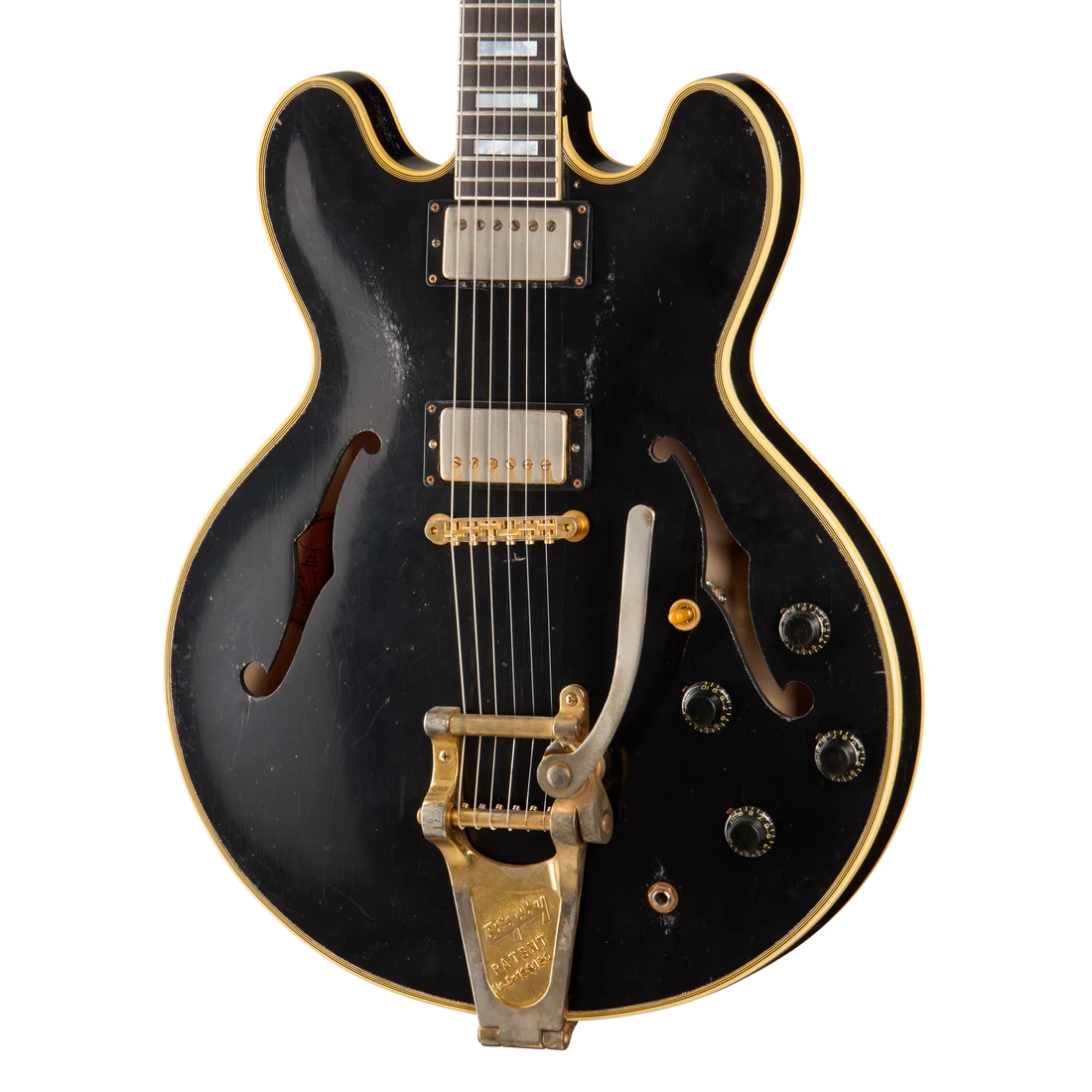 El vibrato es un Bigsby B7 combinado con un puente ABR-1, y en la electronica está equipada con dos pastillas Custombucker sin baño de cera y con imanes Alnico 5 envejecidos específicamente para este modelo, y controladas por potenciómetros CTS de volumen y tono con condensadores de papel en aceite, y un conmutador de 3 posiciones.