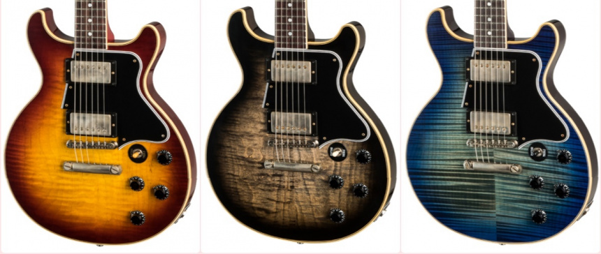 La Gibson Les Paul Special Double Cut Figured Top tiene un precio de lista de 4.499 dólares, y está disponible con lacado de nitrocelulosa y acabado VOS (una patina envejecida sobre madera y herrajes), y con 3 colores a elegir: Bourbon Burst, Cobra Burst y Blue Burst.