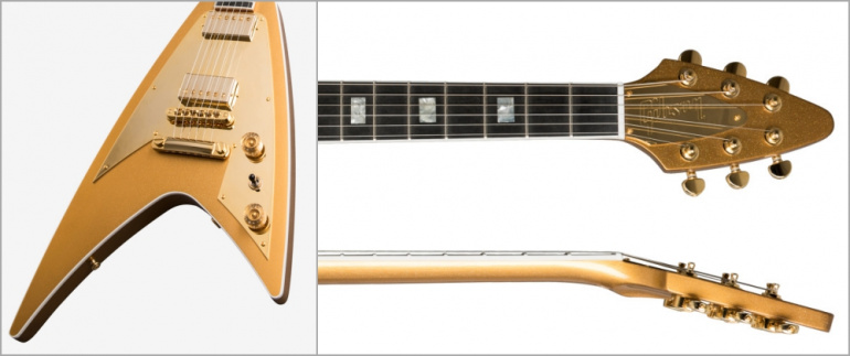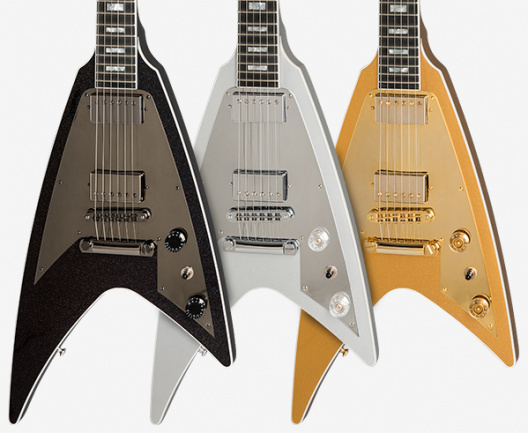La Modern Flying V está disponible en colores Ébano, Plata y Dorado con herrajes a juego, y el precio de 4.499 dólares incluye estuche de la Custom Shop y certificado de autenticidad.