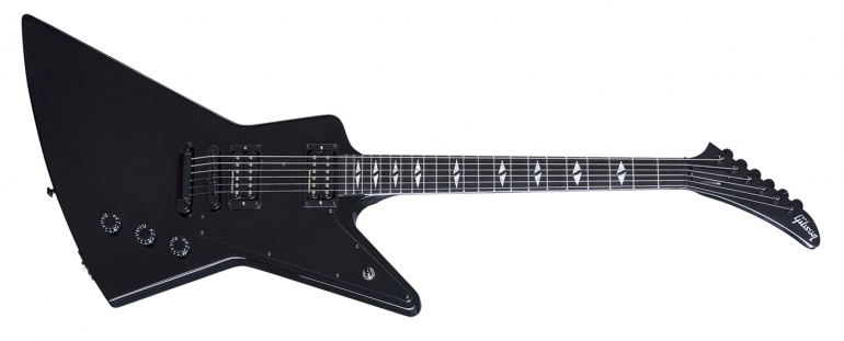La nueva Explorer Blackout cuyo color y acabados en negro delata claramente hacia el mercado al que está enfocado y sus pastillas Dirty Finger no dejan duda. El diapasón lleva binding en negro también, aunque no se aprecie a simple vista y el mástil es del tipo Slim Tapper. Su precio 1999 dólares de lista.