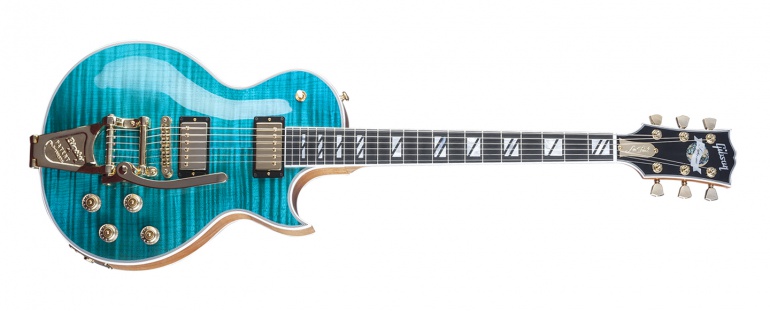Gibson continúa lanzando nuevos modelos de cara al 2015. Comenzamos con una nvueva versión de la Florentine, una guitarra en formato chambered con tapas de arce flameado y con trémolo Bigsby. Destaca en esta nueva Les Paul Supreme Florentine su acabado en color Caribbean Blue. Lleva pastillas 490 R Alnico 2 en el mástil y 489T Alnico 5 en el puente. Su precio es de 5999 dólares de lista.