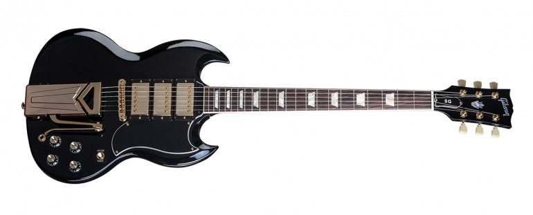 Otra preciosidad es la nueva SGS3, una SG que toma prestado el concepto de la Black Beauty pero aplicado a otro de los íconos de la marca, caracterizado por sus dos cuernos asimétricos. Al acabado color ébano en nitrocelulosa se suma un golpeador de 5 capas y botones tipo top-hat también en negro. El hardware es dorado y destaca el trémolo tipo Maestro Vibrola que se acciona lateralemente. Su precio es de 2499 dólares de lista.