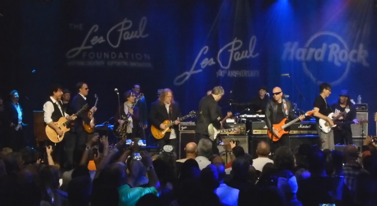 En el Hard Rock Café de Times Square, cerca del Iridium Jazz Club -lugar donde Les Paul tenía como aquel que dice "su casa"-, Steve Vai, Joe Satriani, Warren Haynes, Joe Bonamassa, Johnny A, Steve Miller, Neal Schon, G.E Smith y Joe Pallo, entre otros, se lo pasaron en grande y lo hicieron pasar a lo grande al respetable.