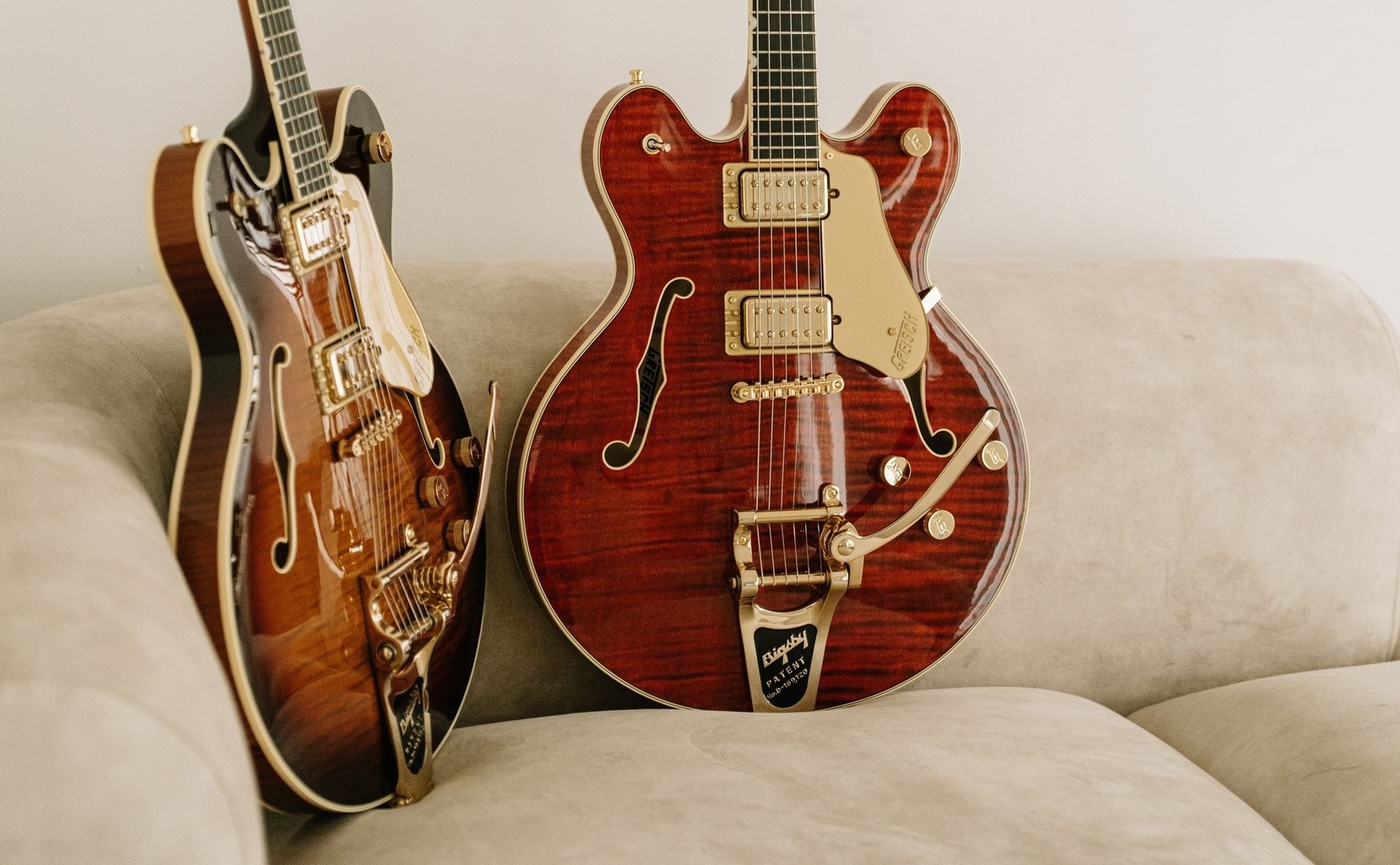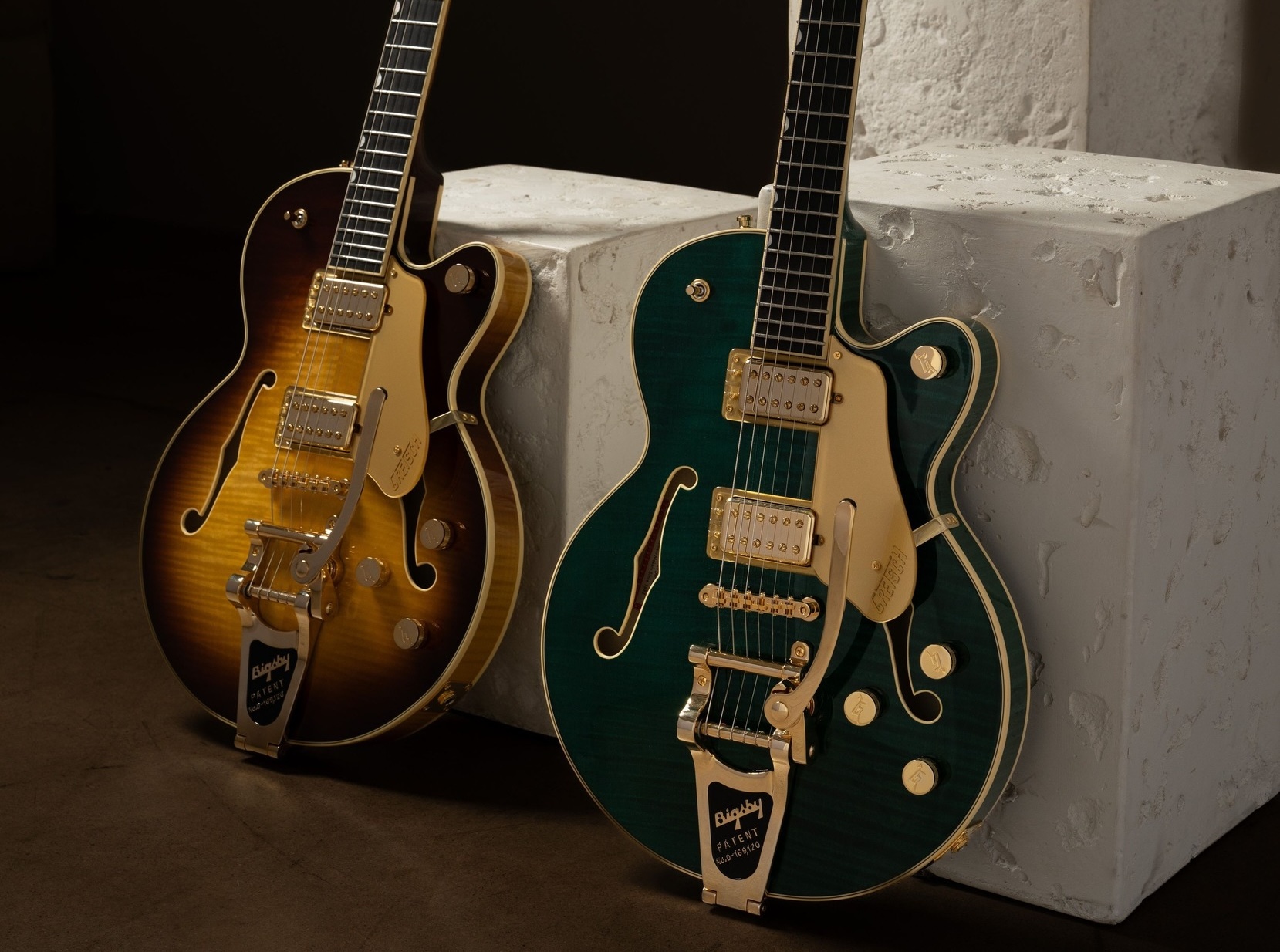 Mientras que otros fabricantes de guitarras diferencias sus gamas asequibles con una segunda marca como hacen Fender, Gibson o Ernie Ball Music Man; con Gretsch puedes tener su diseño retro y el legendario nombre en la pala desde las series más económicas Streamliner o Electromatic fabricadas en China que comienzan sobre los 300 €, hasta las signature como la Falcon de Billy Duffy, o las ediciones limitadas de varios miles de euros. Esta vez nos vamos a esa gama alta con las nuevas Broadkaster LX Figured Center Block de la Professional Collection fabricadas en Japón y disponibles en dos formatos, aunque compartiendo las principales especificaciones.