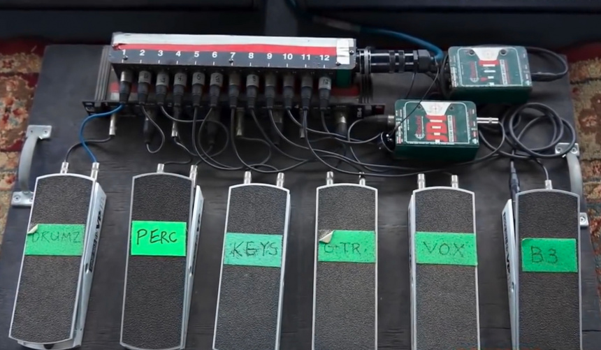 El guitarrista Jimmy Herring controla su mezcla de monitores con 6 pedales de volumen