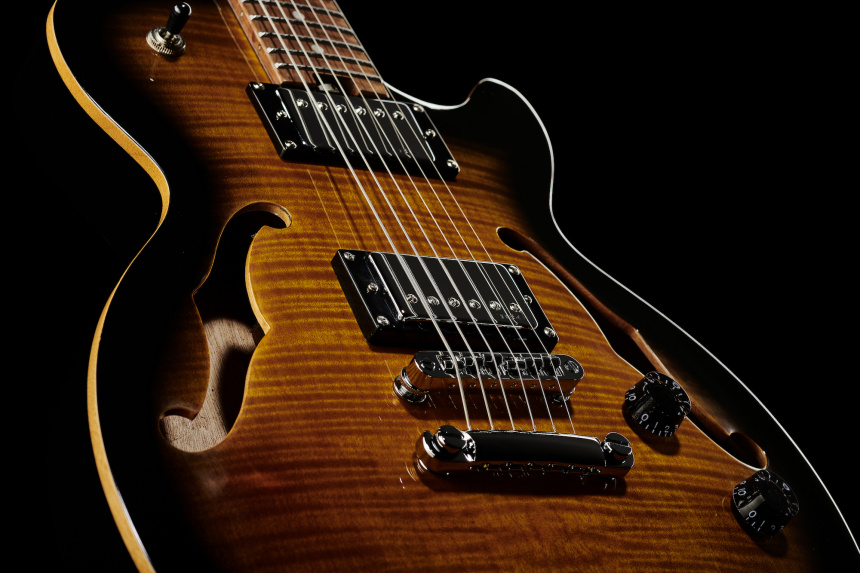 Harley Benton Aeolus, semi sólida con mástil de arce flameado tostado y trastes de acero inoxidable