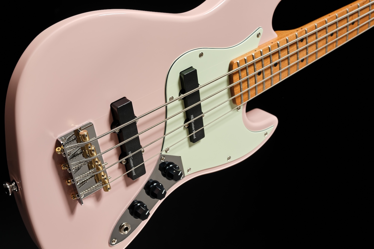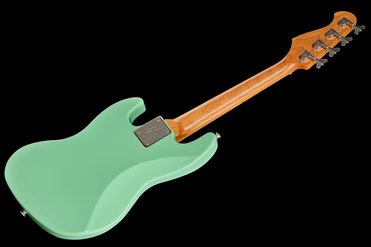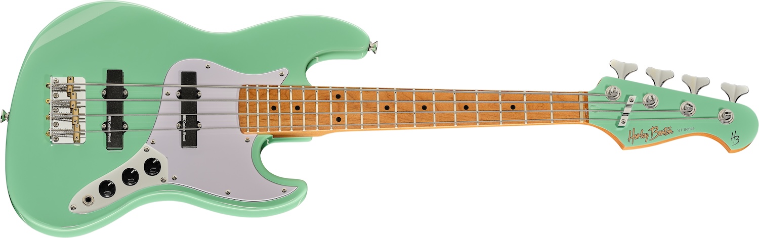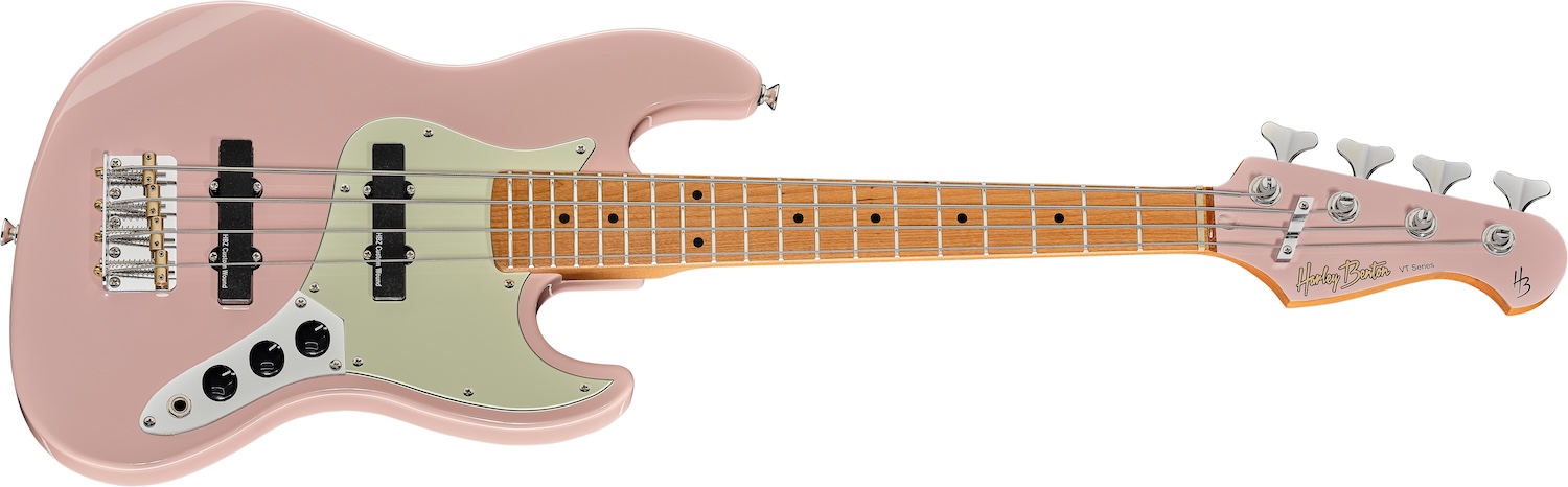 El Harley Benton JB-62CC Mini tiene un diseño estilo Jazz Bass en miniatura con un cuerpo de tilo y dos acabados a elegir: Shell Pink o Seafoam Green, con un golpeador color Mint Green de 3 capas.