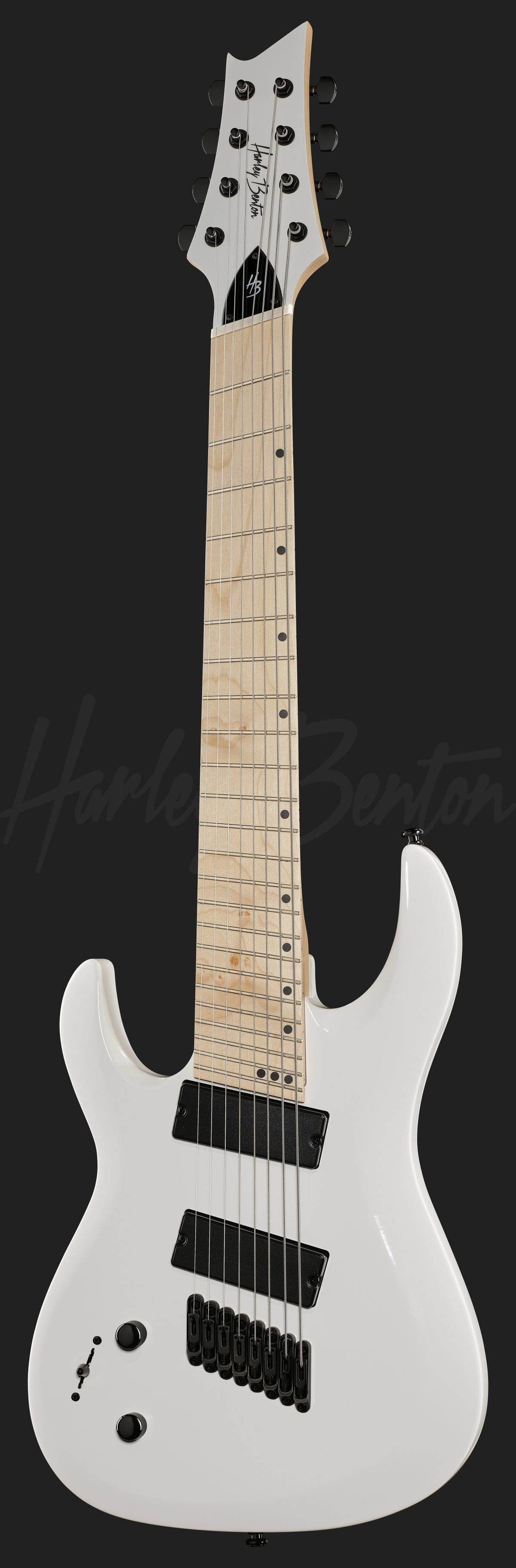 La Harley Benton R-458MN LH WH MultiScale, perteneciente a la Progressive Series de la marca, es una guitarra eléctrica de 8 cuerdas adaptada para músicos zurdos, que cuenta con un cuerpo de álamo con acabado en blanco de alto brillo.