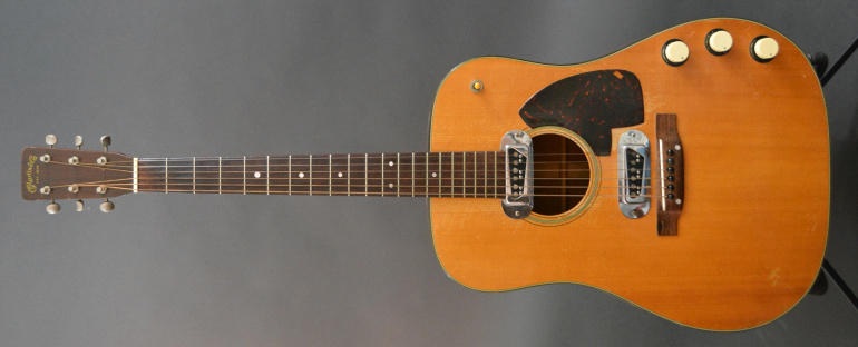 En este vídeo se puede ver a Kurt Cobain con la guitarra de la discordia. Una rara Martin D-18E de 1959 que salía de fábrica con dos pastillas DeArmond con selector y potenciómetros (solo se hicieron unas 300 unidades), que el líder de Nirvana compró en una tienda de segunda mano poco antes del "MTV Unplugged", y modificó para poder tocarla como zurdo, además de añadirle una pastilla Bartolini en el centro. Según comentan algunos, en ese directo la Bartolini es la unica que estaba conectada.