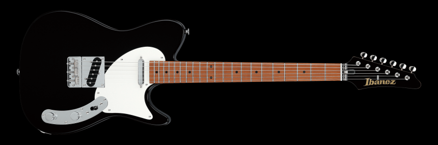 Una guitarra estilo Telecaster con cuerpo de Fresno y acabado Violet, combinado con un mástil de Arce Ojo de Pájaro tostado S-Tech Wood con perfil Oval C, escala de 25.5", 22 trastes Jumbo de Acero inoxidable, radio compuesto 9"-12", marcadores luminiscentes Luminlay, cejuela de hueso, y un clavijero con bloqueo Gotoh Magnum Lock con H.A.P. (Height Adjustable Post o postes con altura ajustable).