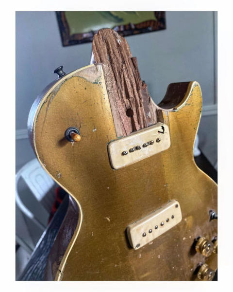 Jared James Nichols explica que se la ha enviado a JW Guitar Restoration, un luthier especializado en restaurar guitarras Fender y Gibson antiguas, para que le reconstruya el mástil y la deje a punto. Eso sí, haciendo hincapié en que sólo va repararla y no va a tocar el acabado, respetando el relic natural que muestra el cuerpo del primer modelo Les Paul que produjo Gibson en 1952, más las cicatrices de haber sobrevivido a un tornado de fuerza EF4.
