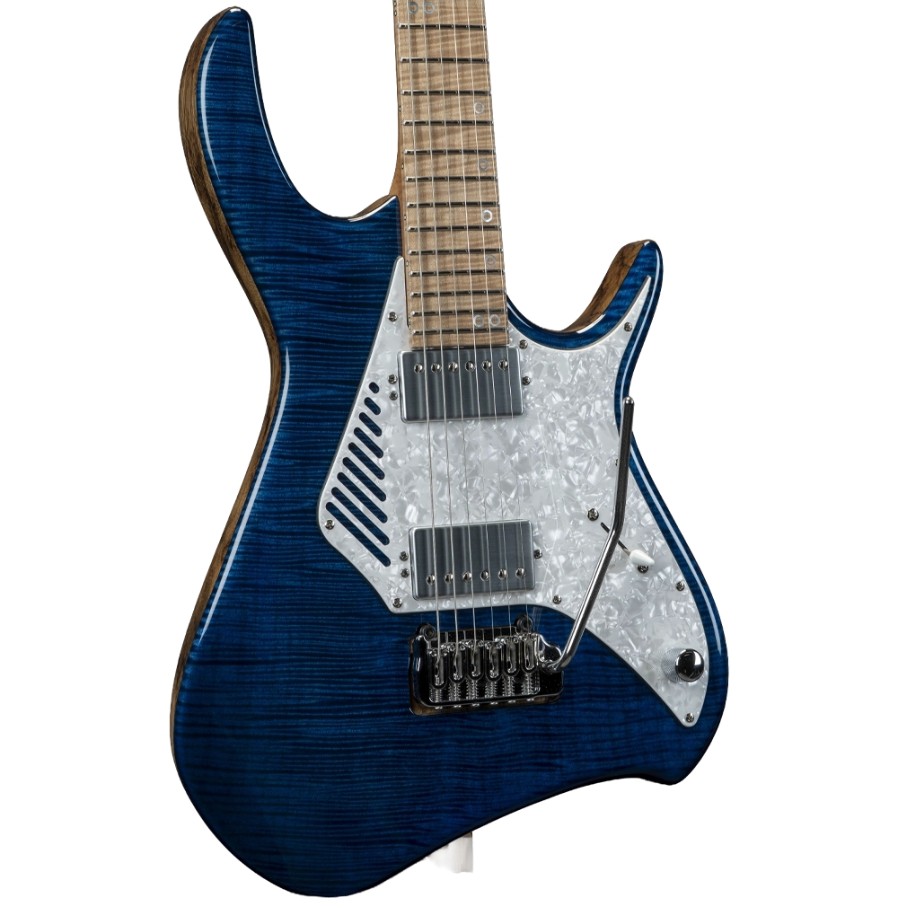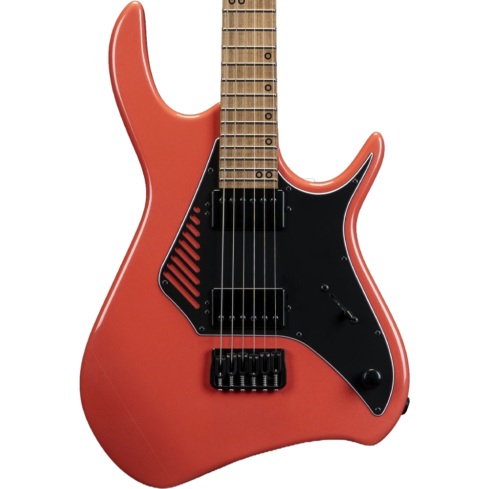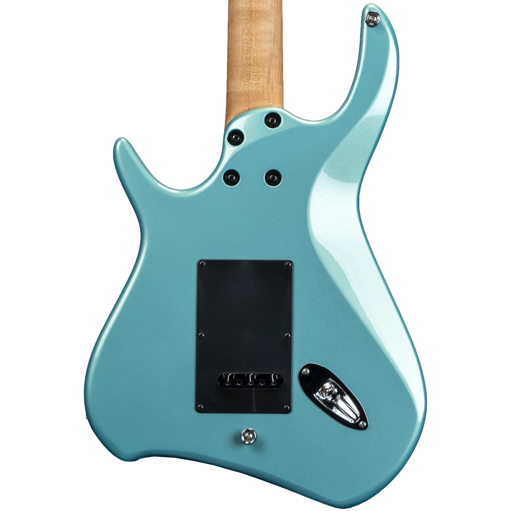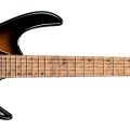 El mástil es atornillado de arce reforzado con dos varillas de fibra de carbono y acabado al aceite, con escala de 25.5", diapasón de ébano, 24 trastes Medium-Jumbo de acero inoxidable, marcadores laterales de Luminlay, radio de 14”, y afinadores Kiesel con bloqueo y relación de giro 19:1. Mención aparte para el conector de jack, que es el típico de Fender Strat, pero situado en la parte trasera. Aunque tiene otro jack en la parte inferior para que elijas donde te va mejor conectar el cable.