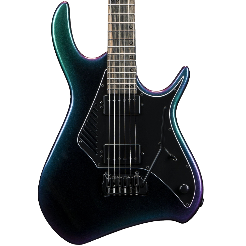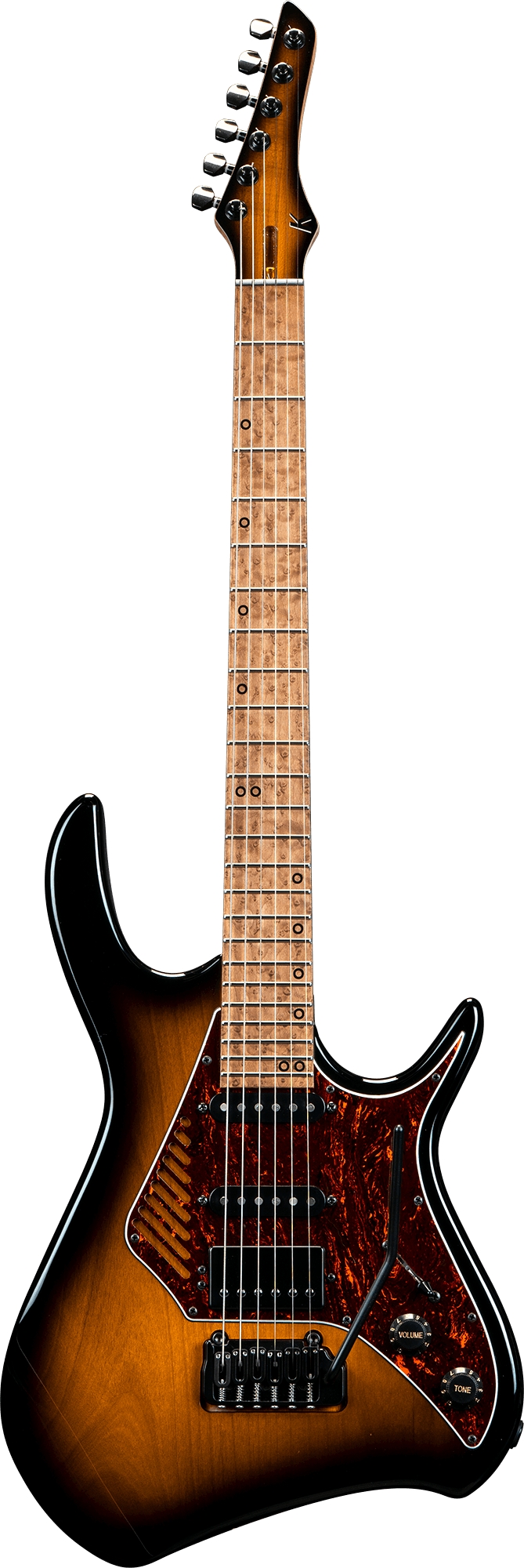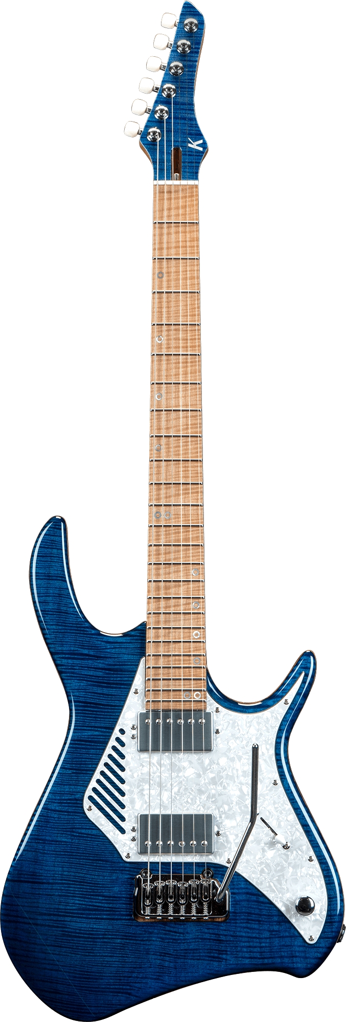La Kiesel Aero cuenta con un estrecho y ligero cuerpo de aliso –la guitarra pesa en total unos 2,8 kg–, con cuernos más redondeados y no tan afilados como en la Kyber, y que como ya es habitual en la marca, ofrece al comprador una amplia paleta de acabados que va desde clásicos sunburst hasta llamativos colores metalizados, pasando por veneers de arce flameado y otras.
