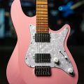 El mástil es de arce con refuerzos de fibra de carbono, perfil delgado, escala de 25.5", 24 trastes Gold Jumbo, radio de 14", y afinadores Premium Kiesel con bloqueo y relación de giro 19:1.