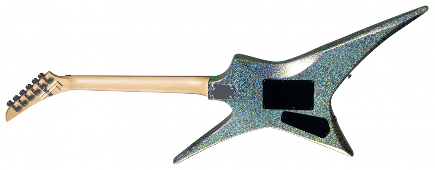 El cuerpo de aliso de la Kramer Lzzy Hale Voyager también llama la atención por estar completamente recubierto de purpurina, en un acabado que han bautizado como Black Diamond Holographic Sparkle.