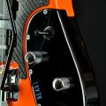La guitarra EGO Thunder Signature “Orange Drop” es la única variante disponible del instrumento en este instante. Es una guitarra hecha de aliso con mástil de arce y diapasón de ébano que presenta dos pastillas. La del puente es una Lace Alumitone Deathbucker, mientras que la pastilla del mástil es la antes citada A Little Thunder. Explicado con algo más de profundidad, esta pastilla es capaz de “escuchar” las tres cuerdas más graves de nuestro instrumento (antes funcionaba sólo con las dos más graves, pero gracias a un nuevo firmware se ha visto ampliada esta función) y con ellas genera unas notas de bajo que envía en una señal separada. Este sistema funciona independientemente de la pastilla que tengamos seleccionada, de modo que aunque estemos tocando un riff con la pastilla del puente, podemos seguir disponiendo de él.