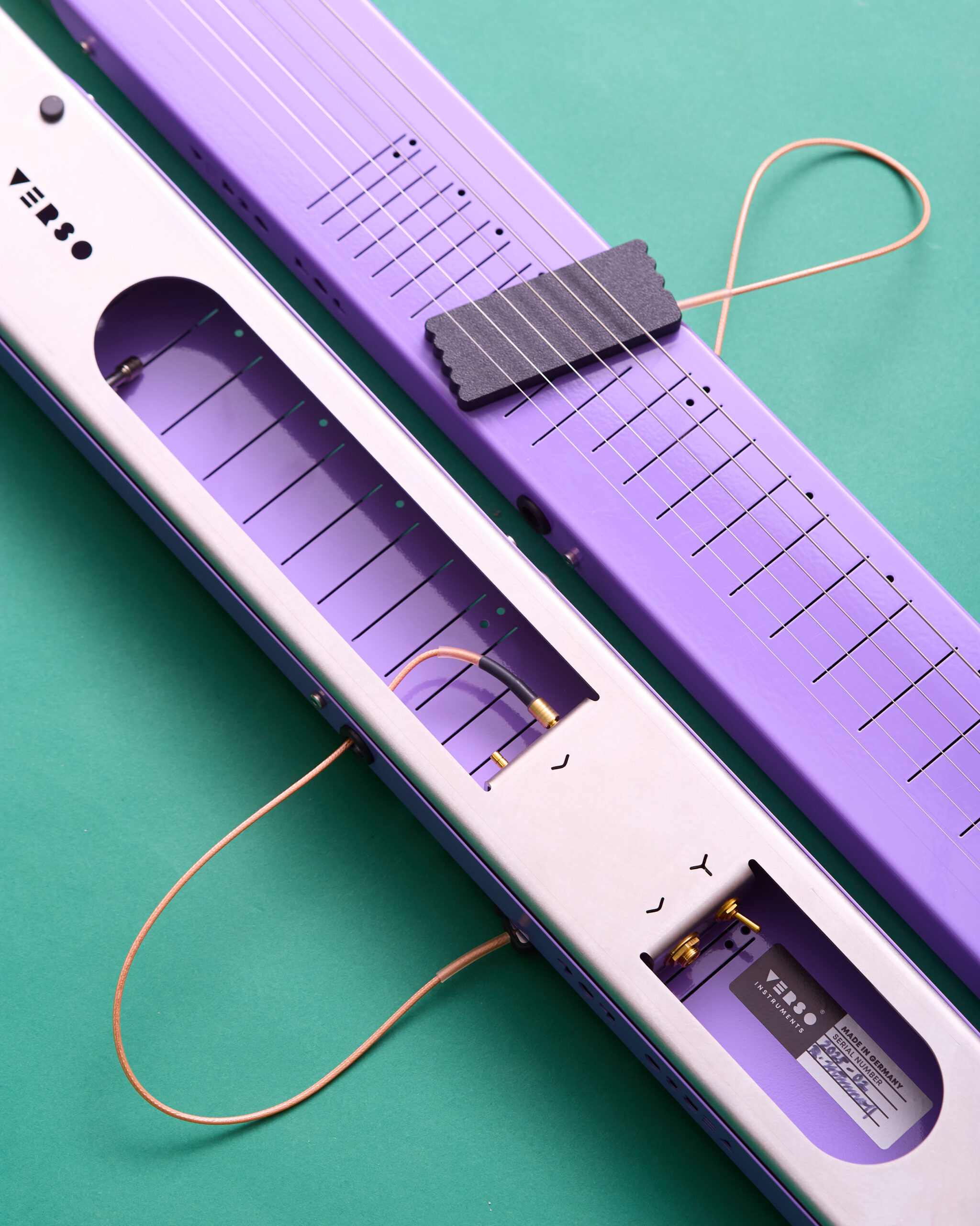 Muchos recodareis la extraña guitarra Cosmo que tenía un cuerpo consistente en una chapa doblada de acero con pastillas móviles. Ese concepto de los alemanes Verso Instruments ha ido evolucionando, y el año pasado lanzaron el modelo Sine, en el que el núcleo del cuerpo ya es de madera, y la lamina de acero actúa como tapa sobre la que se desplazan las pastillas, y también como control de expresión MIDI y CV al doblarla.