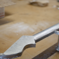 Tras convertirlas en barras de aluminio, procede a fabricar un mástil y un cuerpo de madera para crear los moldes usando una arena mezclada con aceite llamada Petrobond, sobre los que vierte el metal fundido.