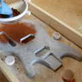 Esta vez ha dejado la resina de lado, y se ha atrevido con el aluminio, para lo que ha construido un horno alimentado con gas propano capaz de alcanzar la temperatura suficiente para fundir 1.000 latas usadas (la mayoría de cerveza).