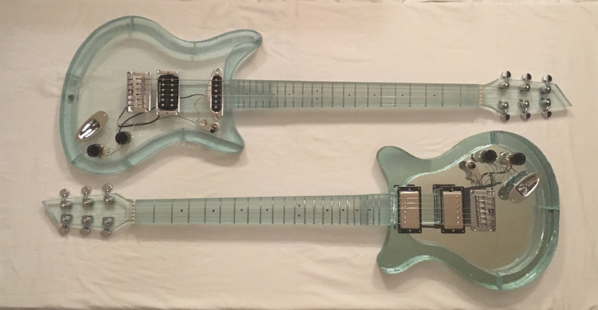 Casi todos conocemos la guitarra hecha de Lucite o Metacrilato que construyeron Dan Armstrong y Ampeg a finales de los 60, y que sirvió de inspiración a otros instrumentos similares. Desde entonces varias marcas como Fano o Bell Guitars han comercializado alguna guitarra con cuerpo transparente de metacrilato. Incluso Fender hizo una Telecaster rellena de agua del río Cumberland para subastarla a beneficio de los músicos de Nashville que perdieron sus instrumentos en una inundación en 2010.