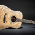 No menos curiosa es la D-42 Bitcoin, una guitarra decorada con motivos relacionados con la moneda virtual, así como con una moneda de oro incrustada en la pala. Es de las más caras del conjunto, 18.999 dólares.