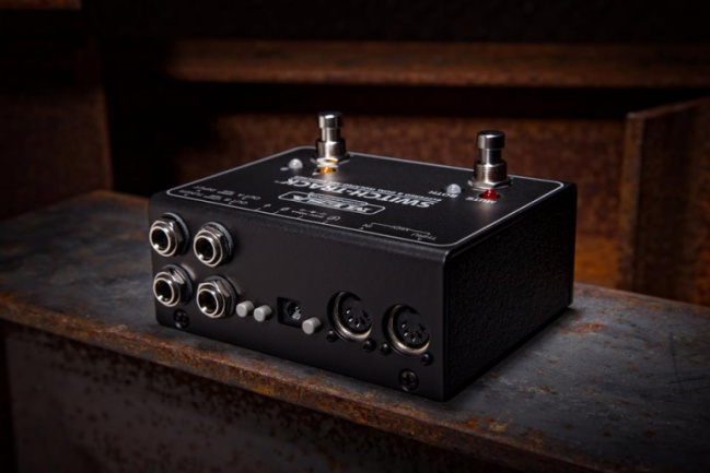 El Switch-track es una caja ABY que nos permite dirigir la señal a un amplificador, a otro, a ambos, o a ninguno (modo Mute). Todo ello se puede controlar a tiempo real gracias a los footswitches que presenta, pero también podemos ordenar su control de forma remota gracias a la incorporación del MIDI, que permite memorizar su posición mediante el Store Switch. También se incluye una salida de afinador que puede ser utilizada como una tercera salida auxiliar, y un selector de fase, para corregir fenómenos de cancelación entre las señales de los dos amplificadores. Todas las conexiones están aisladas para evitar los bucles de masa, y llevan buffer para evitar la degradación tonal.