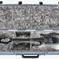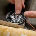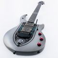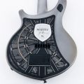 La nueva NOMAC toma como punto de partida el ya muy popular modelo Majesty, que viene siendo la base de todos los nuevos modelos signature de John Petrucci que hemos podido ver últimamente, pero le da una vuelta de tuerca empleando un aspecto externo de lo más llamativo: adornos tallados al láser, colores plateados y “pantallas” acrílicas que muestran ojos son algunos de los elementos que componen la guitarra. Por si fuera poco, también incluye joyas: tras el puente hay un medallón de aluminio anodizado que ilumina una cavidad que contiene tres rubíes, y otros tres diamantes sirven para decorar los potenciómetros de color rojo.