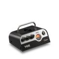 El amplificador se basa en la tecnología Nutube, un sustituto de la válvula mucho más pequeño que una válvula normal, y que según parece ofrecería una respuesta muy similar. En la descripción dada por Vox, este componente (Nutube 6P1) se halla en la sección de previo, y se combina con una etapa de potencia en clase D. El frontal consta de un volumen, un tono y un control de ganancia, además de un curioso vúmetro que le da un toque vintage. En la parte trasera hay un selector Flat/Deep que nos permite obtener una ecualización lo más plana posible o bien con aumento de graves.