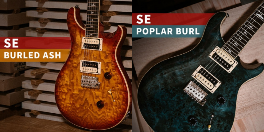 Finalmente tenemos dos nuevas versiones de la SE Custom 24: Burled Ash con acabado Vintage Sunburst y Poplar Burl con un color Whale Blue. Ambas con las especificaciones ya conocidas de este modelo, pero vestidas con unos Veneer en la tapa con llamativos nudos de Fresno y Álamo respectivamente.