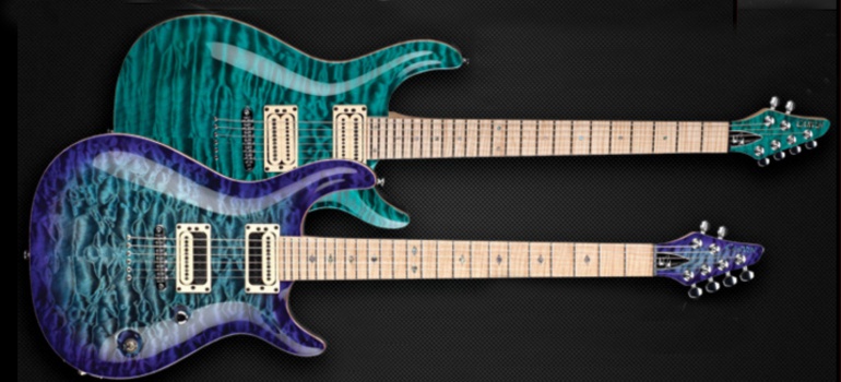 Las características incluyen un cuerpo de caoba con tapa de arce flameado AAAA. Mástil terminado al aceite de cinco piezas de perfil delgado en formato set-neck. Pala de arce flameado a juego con el cuerpo de estilo 2-4 con logo en abalon. Diapasón de arce flameado con incrustaciones de abalon en forma de diamante y trastes de acero inoxidable. Pastillas C22 con master volumen simple y push pull que permite a las pastillas trabajar como single coil.