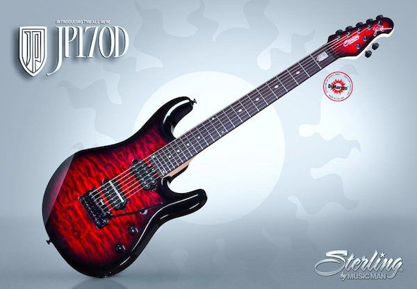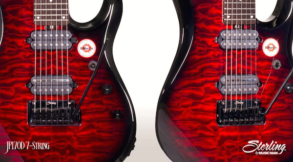 Sterling, la submarca más económica de Music Man, ha anunciado una nueva versión de la John Petrucci Signature en versión de siete cuerdas. Esta nueva JP170D recoge algunas de las características del modelo JP100D de seis cuerdas basada en la Family Reserve, como el cuerpo de tilo con tapa de arce figurado o las pastillas LiquidFire y Crunchlab de DiMarzio ya de serie. Mástil de arce atornillado, diapasón de palorrosa con radio de 16 pulgadas y con el característico escudo en el traste uno. Clavijas de bloqueo y puente Sterling Modern Trem.
