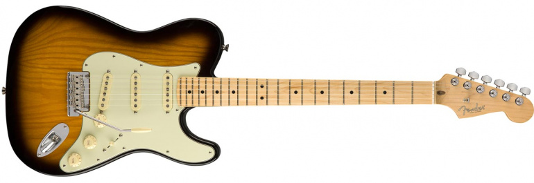 El otro modelo que nos ha llamado la atención es la Strat-Tele Hybrid. Una especie de Stratocaster embutida en el cuerpo de una Telecaster.